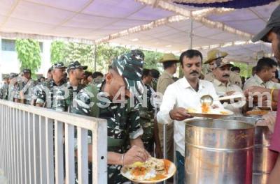 Photo Caption : Food distributed for the election duty officers, CRPF and police personnel, on the eve of Lok Sabha elections, at Kamala Bai School, Queens Road, in Bengaluru on Thursday 25th April 2024