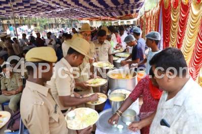 Photo Caption : Food distributed for the election duty officers and police personnel, on the eve of Lok Sabha elections, at Malleshwaram Government School, in Bengaluru on Thursday 25th April 2024