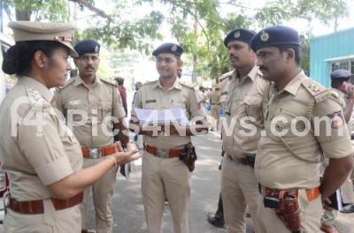 Police officer instructions for the police personnel before leaving to the designated polling booths, on the eve of Lok Sabha elections, at Chamarajpet, in Bengaluru on Thursday 25th April 2024
