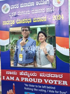 Photo Caption : District Election Officer Tushar Girinath and his wife casting their vote for the Lok Sabha election, in Bengaluru on Friday 26th April 2024