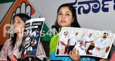 Photo Caption : All India National Women Congress President Alka Lamba and State Women Congress President Pushpa Amar Nath, Congress leaders Sowmya Reddy, Aishwarya Mahadev during a press conference on JDS and BJP alliance Lok Sabha candidate Prajwal Revanna embroiled in a sex scandal at KPCC office, in Bengaluru on Monday 29th April 2024