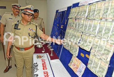 Photo Caption : Commissioner Dayanand B inspects the seized 41 lakhs cash and Jewelry worth 23 lakhs during the property parade by Bytarayanapura and Rajarajeshwari nagar at Police Commissioner Office, in Bengaluru on Tuesday 30th April 2024