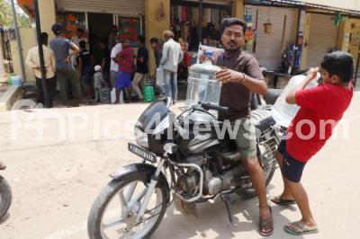 Photo Caption : People carrying drinking water at Ramasandra, due to the delay of the rain and scarcity of drinking water in the City, in Bengaluru on Thursday 2nd May 2024