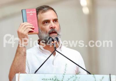 Photo Caption : Congress leader Rahul Gandhi during a public meeting for the Congress Lok Sabha Candidate Geetha Shivarajkumar at Shimoga, in Shimoga on Thursday 2nd May 2024