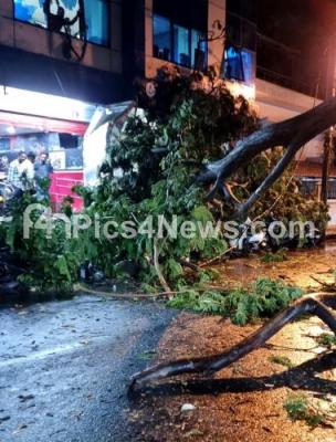 Photo Caption : Tree uprooted in Vijayanagar, after rains lashed Bengaluru City on Thursday 2nd May 2024