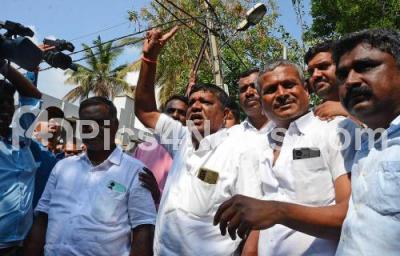 Photo Caption : Supporters and Crowd gathered at Devegowda residence, as HD Revenna arrived after getting bail in the abduction case, in Bengaluru on Tuesday 14th May 2024