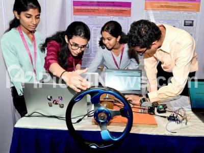 College students during the inauguration of "Pradarshan 2024" project exhibition of Ramaiah Institute of Technology at RIT Premises, in Bengaluru on Thursday 16th May 2024
