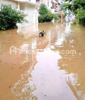 Photo Caption : Rain water logged at Northwood Apartments in Yelahanka, as heavy rains lashed Bengaluru City on Sunday 19th May 2024
