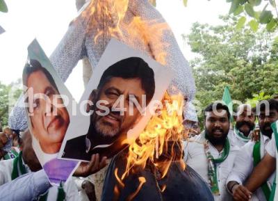 Event Description : JDS party leaders and workers protest by burning the posters and effigy of DCM DK Shivakumar and LR Shivarame Gowda for controversial statement on Former PM and JDS Supremo HD Devegowda at freedom park, in Bengaluru on Monday 20th May 2024