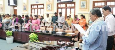 Photo Caption : Chief Minister of Karnataka Siddaramaiah with Chief Secretary Rajneesh Goel and secretariat staff of State Government taking the oath on account of Anti Terrorism Day in remembrance of the tragic assassination of Rajiv Gandhi at Vidhana Soudha, in Bengaluru on Tuesday 21st May 2024