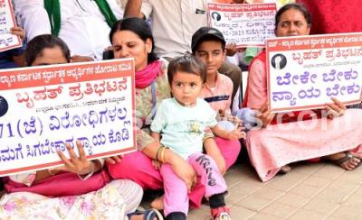 Photo Caption : Members of Hasiru Pratisthana protest demanding constitutional Amendment of 371J and other orders issued by State government at Freedom Park, in Bengaluru on Saturday 1st June 2024