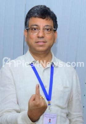 Photo Caption : District Election Officer and Chief Commissioner Tushar Girinath casting his vote for the Graduate and Teachers constituency MLC election, in Bengaluru on Monday 3rd June 2024