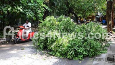 Photo Caption : A tree which was uprooted at Channamanakere Acchukattu, Banashankari, due to last night heavy rainfall in the City, in Bengaluru on Monday 3rd June 2024