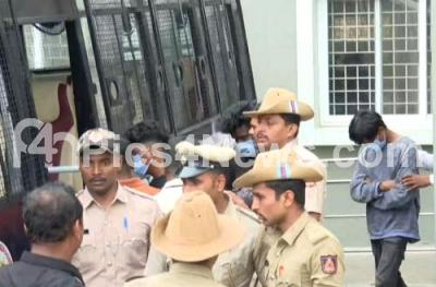 Photo Caption : Accused in Renukaswamy murdered case being taken for the medical test from the Annapurneshwari Police station, including actor Darshan arrested for alleged role in murder over obscene texts, in Bengaluru on Tuesday 11th June 2024