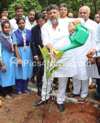 Photo Caption : DCM DK Shivakumar planting a sapling during the World Environment Day 2024 at Bal Bhavan, in Bengaluru on Friday 14th June 2024