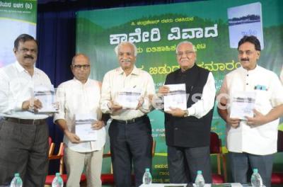Event Description : Justice V Gopal Gowda releasing a book titled "Kaveri Vivada" (Cauvery Dispute) with Book Author C Chandrashekar, Nadoja Dr. Wooday P Krishna, Journalist Dinesh Amin Mattu and others, at Gandhi Bhavan, in Bengaluru on Sunday 16th June 2024