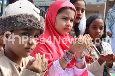 Photo Caption : Muslims children offer prayers on the occasion of Eid Al-Adha prayer at Chamrajpet Eidgah Maidan, in Bengaluru on Monday 17th June 2024