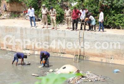 Photo Caption : BBMP workers search for the smartphone of Renuka Swamy in the Rajakaluve, Sumanhalli. Renukaswamy, who was brutally murdered by Actor Darshan and Gang and threw his body in the Rajakaluve side at Sumanahalli , in Bengaluru on Monday 17th June 2024