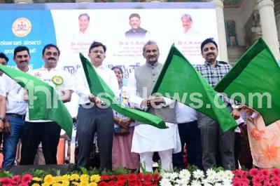 Photo Caption : Power Minister KJ George with Additional Chief Secretary Gaurav Gupta, Chief Electricity Inspector of Govt Tithira N Appacchu and others during the walkathon as part of "National Electrical Safety Week 2024" program at Vidhana Soudha, in Bengaluru on Wednesday 26th June 2024