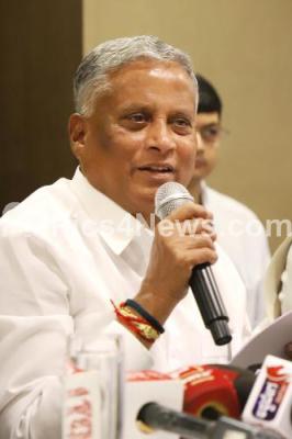 Union Minister of State (MoS) in Ministry of Railways V Somanna addressing a press conference at a private hotel, in Bengaluru on Saturday 29th June 2024