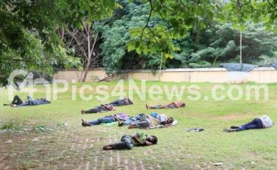 People taking a nap on the lawns at Freedom Park, in Bengaluru on Monday 1st July 2024