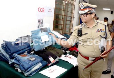 Photo Caption : Police Commissioner Dayananda insects the seized fake brand clothes during a press conference on Property Parade at Police Commissioner Office, in Bengaluru on Tuesday 2nd July 2024