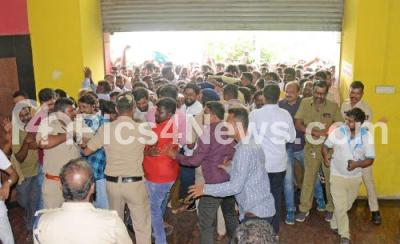 Photo Caption : Cab drivers and Auto drivers barged inside the RTO office shanthi Nagar while protesting against Rapido Bike taxi, in Bengaluru on Thursday 4th July 2024