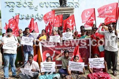 Photo Caption : Members of Communist Party of India (Marxist - Loninist) Liberation protesting against new Criminal Laws, at Freedom Park, in Bengaluru on Friday 5th July 2024