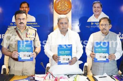 Photo Caption : Chief Minister of Karnataka Siddaramaiah releasing "Digital Arrest investigation procedures" during Annual Meeting of Senior Officers at DG office, also seen are Home Minister Dr. G Parameshwara, DG and IGP Dr Alok Mohan and others , in Bengaluru on Saturday 6th July 2024