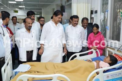 Photo Caption : BJP leaders R Ashok, KC Rammurthy, Somashekar and others enquired the health condition of dengue fever infected patients at Jayanagar Public Hospital, in Bengaluru on Sunday 7th July 2024
