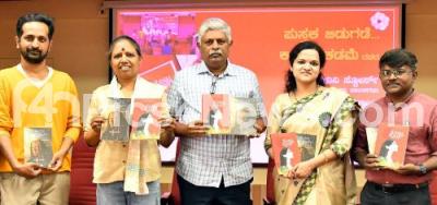 Photo Caption : Poet and Drama Artist KY Narayanswamy releasing "Sanjivini Stores" and "Tottu Kranthi" Kannada books with Book Author Kavya Kadame, Senior Writer Saraswathi, Hulikunte Murthy at National College, in Bengaluru on Sunday 7th July 2024