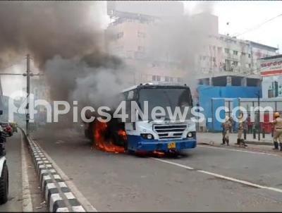 Event Description : A Bangalore Metropolitan Transport Corporation (BMTC) bus caught fire on Tuesday morning near Anil Kumble Junction, no passengers or crew members were injured in the incident, in Bengaluru on Tuesday 9th July 2024