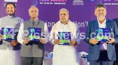 Photo Caption : Chief Minister of Karnataka Siddaramaiah with DCM DK Shivakumar, Minister Priyank Kharge and MLA Sharath Bache Gowda during the curtain raiser of Bengaluru TECH Summit, which will be held on 19th to 21st Nov 2024, in Bengaluru on Friday 12th July 2024