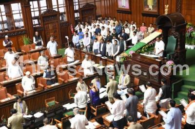 Photo Caption : Speaker UT Khader, Chief Minister of Karnataka Siddaramaiah, DCM DK Shivakumar, Ministers and MLAs during Assembly Session at Vidhana Soudha, in Bengaluru on Monday 15th July 2024