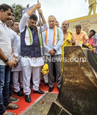 Photo Caption : DCM DK Shivakumar performed guddali pooja to inaugurate the white topping of roads and footpaths, at Gandhi Nagar assembly constituency, also seen are Minister Dinesh Gundu rao and others, in Bengaluru on Monday 15th July 2024