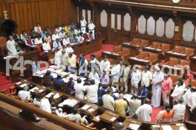 Photo Caption : BJP and JD(S) MLCs protesting during Council session at Vidhana Soudha, in Bengaluru on Tuesday 16th July 2024