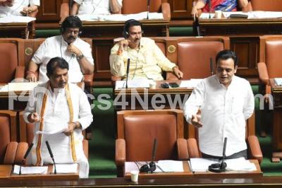 Photo Caption : Opposition leader R Ashoka and BJP MLA Ashwath Narayan addressing during the Assembly session at Vidhana Soudha, in Bengaluru on Tuesday 16th July 2024