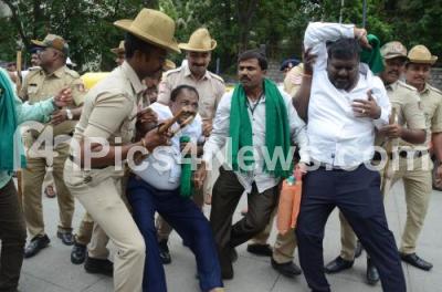 Event Description : Members of Rajya Raitha Sangha and Hasiru Sene were detained by police during a protest at Freedom Park to fulfill the entitlement of farmers demands, in Bengaluru on Monday 22nd July 2024