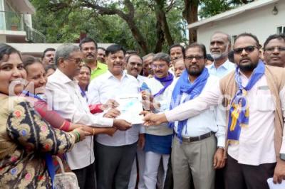 Photo Caption : Members of Dalita Sangarsha Samithi submitting memorandum to Minister HC Mahadevappa, in Bengaluru on Wednesday 24th July 2024