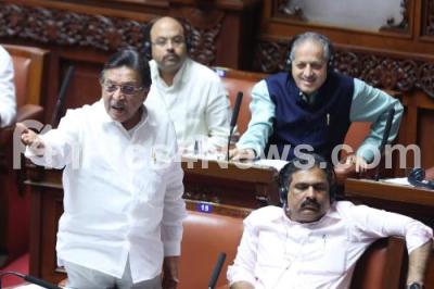 Photo Caption : MLC MR Seetharam arguing with BJP and JD(S) MLCs during the Council Session at Vidhana Soudha, in Bengaluru on Thursday 25th July 2024
