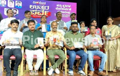 Photo Caption : Film Director B Suresh with Book Author Ragam, Columnist Karki Krishnamurthy, Madhu YN, Veeraka Putra and others during the release of "Uttara Parva" book at Kannada Sahitya Parishat, in Bengaluru on Sunday 4th August 2024