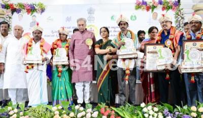 Photo Caption : Council Chairman Basavaraj Horatti with State awardees of Handloom Workers , Minister Shivananda Patil, MLA Rizwan Arshad and Chief Secretary Shalini Rajneesh during the inauguration of 10th National Handloom Day at Vidhana Soudha, in Bengaluru on Wednesday 7th August 2024