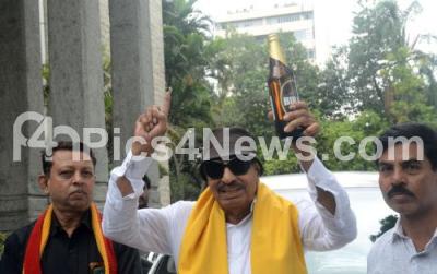 Photo Caption : Members of Kannada Chaluvali Vatal Paksha led by Vatal Nagaraj staged a protest against the Karnataka Government for extending the operating hours of Shops, Bars, Hotels and licensed establishments until 1am at BBMP Head Office, in Bengaluru on Thursday 8th August 2024