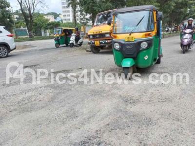 Event Description : Potholes menace due to rain at Hosakerehalli, Banashankari Ring road, has been causing major inconvenience to people and motorists, in Bengaluru on Sunday 11th August 2024