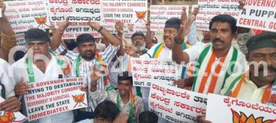Photo Caption : Members of Bengaluru City Youth Congress protesting against Governor Thaawar Chand Gehlot for his prosecution permission on CM Siddaramaiah to enquire the MUDA scam, in Bengaluru on Saturday 17th August 2024