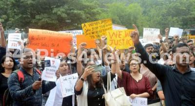 Event Description : Members of Bengali Association protest and condemn the rape and murder of a young medic from Kolkata, the protest was held at Freedom Park, in Bengaluru on Sunday 19th August 2024