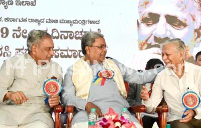 Photo Caption : Chief Minister of Karnataka Siddaramaiah with Council Chairman Basavaraj Horatti and Devaraj Urs awardee Former Minister SK Kantha during the Devaraj Urs award presentation ceremony, at Vidhana Soudha, in Bengaluru on Tuesday 20th August 2024