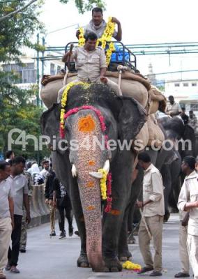 Event Description : Dasara elephants Jumbo savari rehearsal ahead of Dasara 2024 festival celebrations at Mysore Palace, in Mysuru on Sunday 1st September 2024