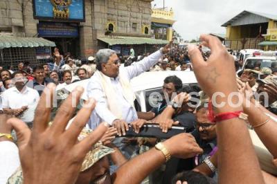 Photo Caption : Chief Minister of Karnataka Siddaramaiah greeting the gathered crowd during his visit to Chamundeshwari Temple, in Mysuru on Tuesday 3rd September 2024