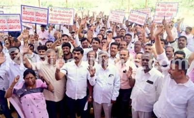 Photo Caption : BBMP Contractors Association staging a protest at Freedom Park, against BBMP Commissioner and demanding to release the funds, in Bengaluru on Wednesday 4th September 2024